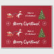 Cadeau de Noël moderne avec les mots "Joyeux Noël" dans la typographie stylisée, flocons de neige, illustration d'une licorne tirant Père Noël dans son traîneau, et un arbre de Noël. Sur un arrière - plan rouge. Notez que vous pouvez personnaliser le petit salut avec le nom d'un enfant.