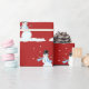 Happy snowman illustré papier d'emballage motif sur un rouleau. Enveloppement cadeau de qualité avec mon propre dessin de bonhomme de neige et des flocons de neige tomber. L'Arrière - plan est rouge foncé et le design est parfait pour les fêtes de fin d'année, les anniversaires d'hiver ou les fêtes pour lui.