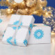 Papier Cadeau Joyeux texte de Noël cadre rond flocon bleu wh