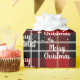 White Joyeux texte de Noël dans un motif de flocon de neige sur arrière - plan écossais en plaid noir et rouge. Le texte peut être modifié.