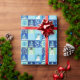 Kids Octopus Winter Sports Patchwork Personalized Quilt Pattern Wrapping Paper. Octopus and Snowman pattern with winter sports, skiing, sledding, and snowboarding. Winter Holiday Christmas or Hanukah or winter birthday.