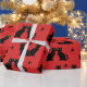 Papier Cadeau Kitty noir rétro sur des étoiles rouges enveloppan