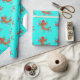 Papier Cadeau Koi poisson oriental floral orange turquoise éléga
