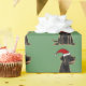 Chiot noir drôle et mignon merveilleux de labrador retriever portant un papier d'emballage de Noël de casquette du père noël. Peut également ajouter le texte fait sur commande et changer la couleur d'arrière - plan en passant commande. Perfectionnez pour les cadeaux personnalisés pendant les vacances.