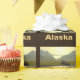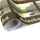 Un orignal traîne dans un étang par une journée ensoleillée d'automne dans la chaîne Brooks de l'Alaska. Le texte "Alaska" apparaît également.