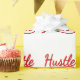 Le mot "hustle" en rouge avec des ombres tombantes en noir. Design original.