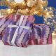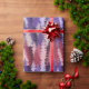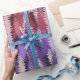 An illustration of layered pine trees arranged in horizontal bands, featuring cool violet, lavender, and pink shades.