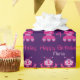 Enfants de joyeux anniversaire roses et papier d'emballage mignon de motif pourpre de robot. Robot magenta de roses indien idiotes sur l'arrière - plan pourpre foncé. Personnalisez avec le nom et l'âge de l'enfant pour leur fête d'anniversaire. Amusement pour les parties orientées de robot et les amants de robot. L'arrière - plan peut être changé en blanc ou noir. Robots girly mignons dans des couleurs féminines d'amusement.