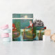 Le papier d'emballage vintage avec du charme comportant Père Noël la nuit dans un bateau a rempli de jouets.