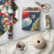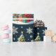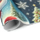 Ce papier d'emballage présente un design animé et festif avec le Père Noël représenté dans diverses activités joyeuses. Les scènes incluent Père Noël chevauchant son traîneau avec des rennes, agitant joyeusement, livrant des cadeaux aux maisons enneigées, et appréciant le lait et les biscuits par un sapin de Noël. Le motif répétitif est dressé contre un ciel étoilé bleu nuit, rehaussé d'accents dorés, de flocons de neige et de sprigs saints. Les rouges chauds, les blancs et les verts créent une esthétique de Noël classique, parfaite pour envelopper les cadeaux avec la joie des fêtes.