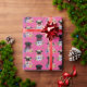 Carlins noirs et peaux en fleurs sur papier cadeau rose
