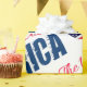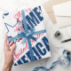 Drapeau américain en forme de carte des Etats-Unis, étoile blanche avec contour bleu, texte rouge et bleu Les Etats-Unis d'Amérique. Le Jour de l'Indépendance et d'autres occasions des cadeaux patriotiques et des souvenirs pour tout le monde. Papier cadeau. Personnalisable . Vous pouvez modifier l'image. Bon appétit !