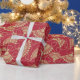 Ventilateurs d'or avec corde sur arrière - plan rouge.