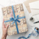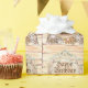 Ce papier d'emballage personnalisé présente un thème illustré d'aquarelle boisée pour bébés animaux. L'arrière - plan est un motif en planches de bois. Une illustration de bébés animaux de bois, y compris un cerf, un hérisson, un écureuil et un lapin lapin, sont photographiés devant une souche d'arbre.