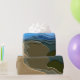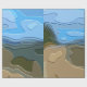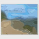 Un design abstrait lumineux et coloré d'une vue sur la montagne, avec ciel bleu, roche et arbres.