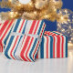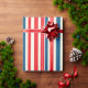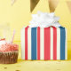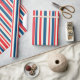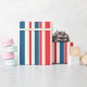 Cette oeuvre présente un motif audacieux et simple de bandes verticales dans un style classique de couleurs rouge, blanc et bleu. Les bandes sont espacées de façon uniforme et alternent en épaisseur, créant un design rythmique et visuellement frappant. L'agencement épuré et linéaire des couleurs donne à l'oeuvre un sens de l'ordre et de la simplicité, tandis que l'utilisation de teintes patriotiques évoque un sentiment de fierté et de tradition nationales. La répétition et l'équilibre dans le motif contribuent à son esthétique forte et géométrique.