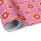 Wrapping paper with a seamless modern geometric flower pattern in the colors of the lesbian pride flag; an orange, pink, and white lesbian pride design
