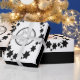 L'Étoile de David - L'Hanoukka de Fête Juive. Ce design noir et blanc présente l'"Etoile de David". Des étoiles entourent l'Étoile de David dans une forme ovale. Les coins sont décorés de feuille et de l'étoile de David. Ce papier d'emballage est livré en styles assortis. Choisissez votre style et votre design favoris.