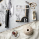 Papier à enveloppement Monogramme personnalisé avec marbre blanc et noir design par MIGNED - Ajouter votre lettre / ou année - Age / Numéro / Plus avec outil de personnalisation!