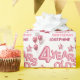 Papier d'emballage anniversaire de enfant adorable avec ballon rose numéro 4, ballon alphabet lettre, ballon étoile et ballon de fête. Avec un message de bienvenue "Joyeux anniversaire" et le nom de l'enfant. Les deux peuvent être customisés.