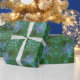 Un abstrait artistique coloré en bleu et vert percé avec un aspect holographique comme une explosion de peinture rayonnant du centre. #giftwrap #artisanat