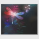 Lumineuse, volante, libellule rouge, avec des ailes transparentes et détaillées sur arrière - plan sombre, nocturne, lumineux avec plantes tropicaux et lucioles. libellule rouge.
