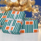 Ce papier d'emballage a un design moderne du milieu du siècle fait de cinq lignes turquoises et rectangles orange répété à travers le design.
