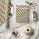 Papier Cadeau Lignes/stries de Noël blanches, rouges, vertes