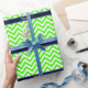 Papier Cadeau Lime Green LG Chevron Navy Blue Nom Monogramme