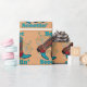 Ligne papier d'emballage cadeau de danse avec bottes de cowboy et symboles de musique derrière eux et le texte "Boot Scootin"