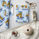 Mettez en ligne le papier d'emballage cadeau de danse avec des bottes de cowboy et des symboles de musique derrière eux et le texte "Boot Scootin". Ce design est disponible en deux couleurs différentes.