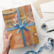 Papier Cadeau LION ET DRAGON Fresque médiévale en orange jaune