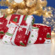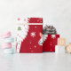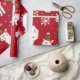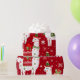 Un motif festif avec des lamas joyeux ornés de cadeaux colorés et de décorations de vacances. Les lamas sont dressées contre un arrière - plan rouge vif, entrecoupés de flocons de neige et de plantes de cactus. Chaque Llama a une expression ludique.
