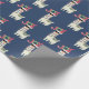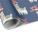 Papier d'emballage à motifs avec une illustration amusante. Un mignon lama portant des lunettes de soleil noires et un chapeau de santa rouge. Portant également une couverture de style sud-américain et des pom-poms. Le mot Joy écrit au-dessus de sa tête dans une police festive et colorée.