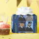 La tuile de trois singes à travers le papier d'emballage, à côté de la photo de votre diplômé. Utilisez le modèle pour ajouter un message court et fait sur commande de "félicitations" en jaune.