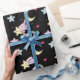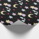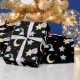 Papier Cadeau Lune, étoiles et nuages Motif sur noir