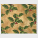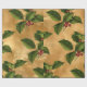 Papier Cadeau Luxe Gold Faux Foil, Green Holly, Red Berries