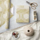 A sophisticated seamless geometric pattern wrapping paper featuring a grid of interlocking hexagons outlined in metallic gold. Each hexagon contains elegant linework and subtle geometric details, set against a softly textured cream and beige marble background. The blend of warm neutrals and gold accents gives this design a modern, refined, and luxurious feel.