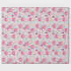 Un rouleau délicieux de papier d'emballage avec un design motif délicieux. Des beignets rose vernis avec des arroses. Serviettes d'arrosage à la bouche en rose et bleu avec rosettes et fraises sur le dessus. Des macarons de pâtisserie rose pastel et de petits boutons de bonbons roses décorent également ce motif plein de douceurs.
