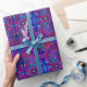 Papier Cadeau Magenta marbré, Art Abstrait bleu et rouge