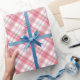 Papier Cadeau Magnifique motif à carreaux gris rouge rose