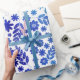 Papier Cadeau Main bleue de Chine dessinée motif floral