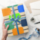 Ce papier d'emballage a un design Bauhaus de plusieurs couleurs. Amusant et audacieux.