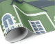 A l'extérieur d'une maison verte foncée. Cette conception semble vraiment efficace sur ces papiers d'enveloppement