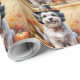 Un tableau aquarelle d'un chien gai assis au milieu d'un tas de feuilles d'automne vibrantes, entouré de minuscules citrouilles et de glands épars. Le chien porte un petit casquette pèlerin et des poutres de joie, capturant l'esprit de Thanksgiving. Dans l'arrière - plan, les champs de moissons et les arbres dorés créent une ambiance campagnarde paisible. Des textures douces et des tons d'automne chauds et feutrés confèrent à la scène une atmosphère cosy et nostalgique parfaite pour célébrer la beauté de la saison.