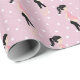 Femme enceinte avec une queue de cheval sur arrière - plan pois rose et blanc.