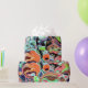 Papier cadeau d'anniversaire bleu, rouge, vert citron, brun, violet, turquoise et turquoise.