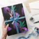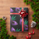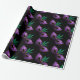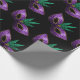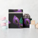 Papier d'enveloppement Festif Beau masque Mardi Gras en Passion violet avec Embellie dorée jaune et plumes vert émeraude sur noir. Nous utilisons Photo de parties scintillant pétillante!