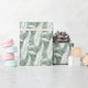Papier Cadeau Mariage avec motif de plumes vertes et blanches