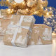 Beau papier pour offrir des cadeaux de mariage. Un motif de mariage blanc et beige avec des accents dorés